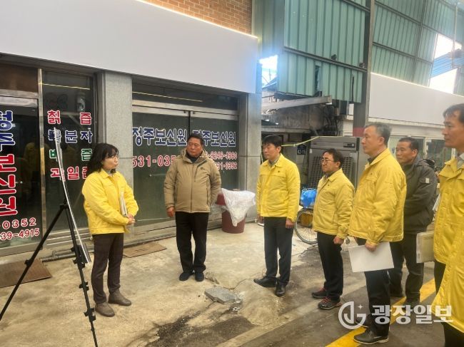 먼저 정읍시 샘고을시장을 찾아 전통시장 아케이드와 비가림시설, PEB 구조물 등 적설에 취약한 시설물의 이상 유무와 관리 상태를 점검하고, 강설 시 눈 적치로 인한 붕괴 및 안전사고 예방을 위한 현장 관리 강화를 당부했다.