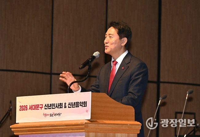 광장일보 주리아 기자 | 오세훈 서울시장이 15일 오후 3시 연세대학교 대강당(서대문구 연세로 50)에서 열린 ‘2026년 서대문구 신년인사회’에 참석해 주민들과 새해 인사를 나누고, 올해 시정 운영 방향을 전달했다.