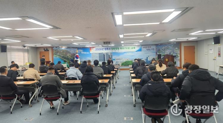 광장일보 주재영 기자 | 진주시는 지난 15일과 16일 이틀에 걸쳐 청원경찰의 근무기강 확립과 직무윤리 강화를 위한 ‘2026 청원경찰 복무교육’을 실시했다고 밝혔다.