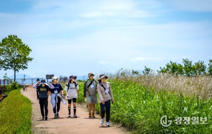 습지를 걷던 여행자들은 정원으로 들어오고, 강변 산책로에서는 시민과 관광객의 발걸음이 겹쳐진다.