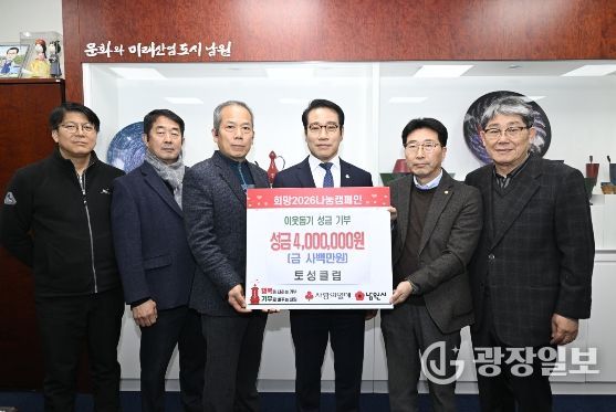 광장일보 주재영 기자 | 남원시는 1월 15일, 남원시 토성클럽(회장 김정근)에서 희망2026 나눔캠페인 기간을 맞아 4백만 원의 성금을 기부했다고 밝혔다.