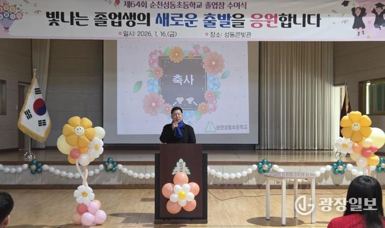 김 위원장은 “졸업생 여러분은 성동초등학교에서 지식뿐 아니라 친구와 함께하는 기쁨, 서로를 존중하고 배려하는 마음을 배워 왔다”라며, “그동안 쌓아 온 따뜻한 인성과 바른 태도는 앞으로 어떤 길을 선택하더라도 여러분을 든든히 지켜 줄 소중한 힘이 될 것”이라고 강조했다.