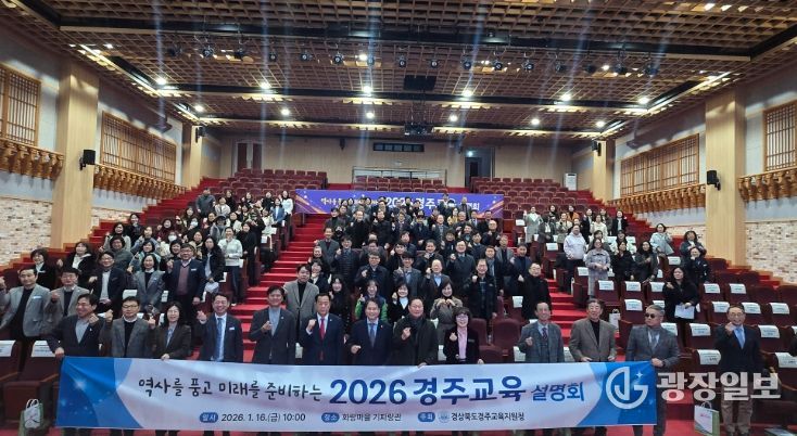 광장일보 주재영 기자 | 경상북도경주교육지원청은 2026년 1월 16일 오전 10시, 경주시 화랑마을 기파랑관에서 '2026 경주교육 설명회'를 개최했다.