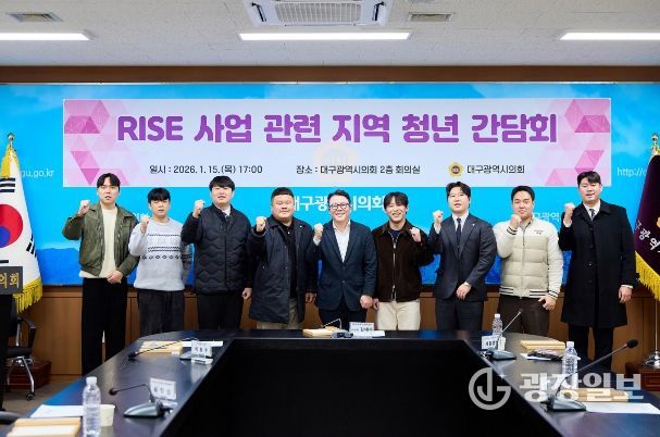 광장일보 주재영 기자 | 대구시의회 김태우 예산결산특별위원장(수성구5)은 1월 15일 시의회 2층 회의실에서 지역 청년 대표들과 함께 RISE(지역혁신중심 대학지원체계) 사업 관련 간담회를 개최했다.