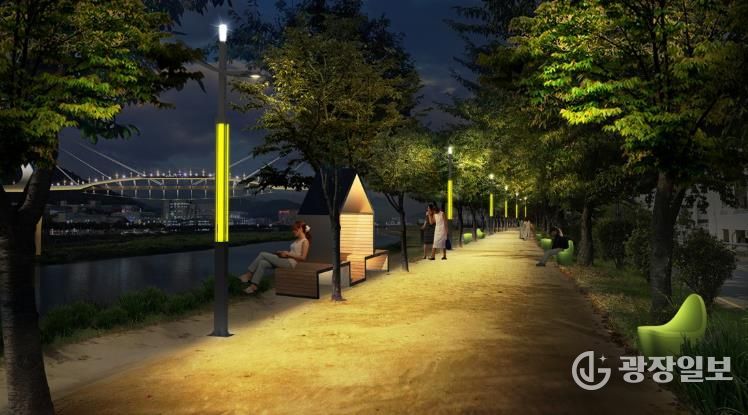또 영대교에서부터 쌍벽루국민체육센터까지 둑마루길 800m구간에는 LED열주등 34개 경관조명 개선을 통해 기존산책로가 감성공간으로 탈바꿈하게 된다.