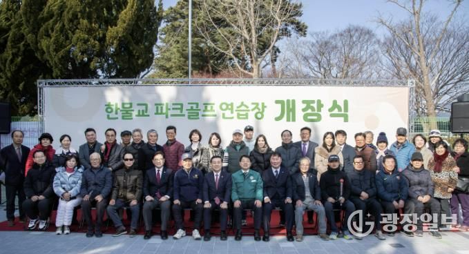 광장일보 주재영 기자 | 부산 금정구는 지난 1월 14일‘한물교 파크골프 연습장 개장식’을 개최하고 본격적인 운영에 들어갔다. 개장식에는 구청장, 시·구의원, 금정구 체육회장, 금정구 파크골프 협회 소속 회원 등 60여 명이 참석해 개장을 함께 축하했다.