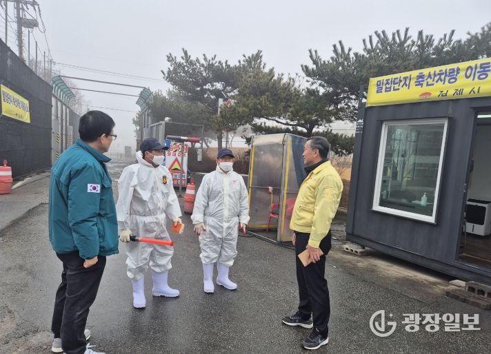 광장일보 주재영 기자 | 김제시 농업기술센터는 지난 16일 방역 최일선인 용지 산란계 밀집단지‘거점소독시설, 통제초소, 알 환적장’을 방문해 조류인플루엔자(AI) 확산 차단을 위한 차량 및 대인 소독 상황과 소독시설의 정상 작동 여부 등 방역상황을 점검하고 초소 현장 근무자들을 격려했다고 밝혔다.