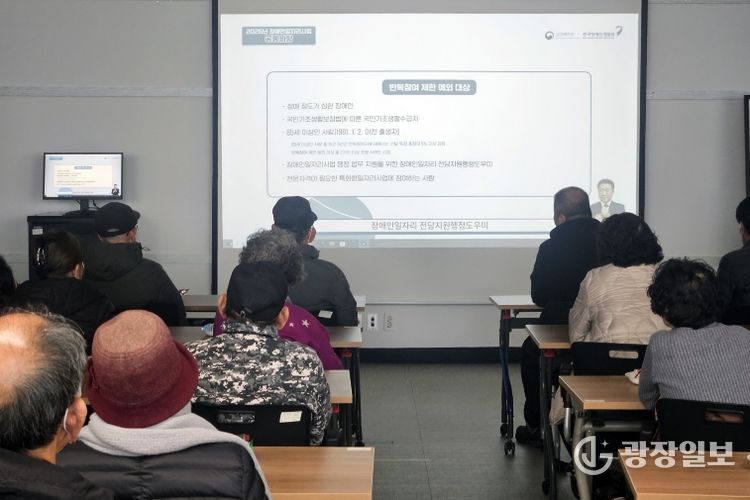 이번 교육은 장애인 일자리 사업에 대한 이해를 돕는 사업 안내를 비롯해 참여자들이 근무 현장에서 안전하게 활동하고 원활하게 업무를 수행할 수 있도록 안전보건교육, 성희롱 예방 교육, 장애인 인식 개선 교육 등으로 이뤄졌다.