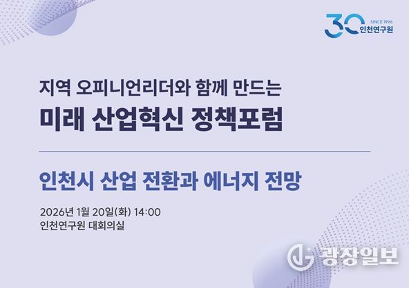 광장일보 주재영 기자 | 인천연구원은 2026년 1월 20일 오후 2시, 연구원 대회의실에서 '2026년 제1차 인천 미래 산업혁신 정책포럼'을 개최한다.