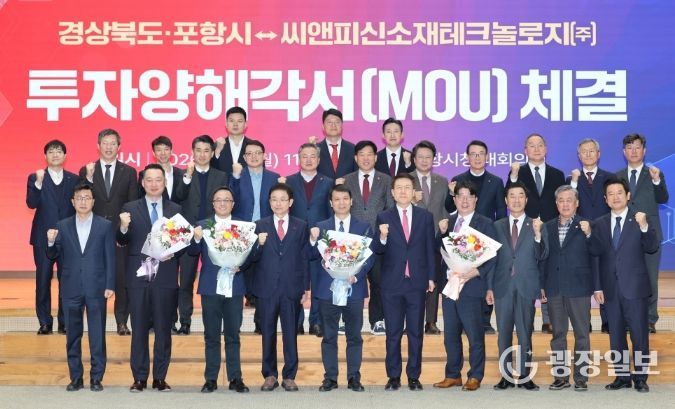 광장일보 주재영 기자 | 포항시와 경상북도는 19일 포항시청 대회의실에서 씨앤피신소재테크놀로지㈜와 5,000억 원 규모의 투자양해각서(MOU)를 체결했다.