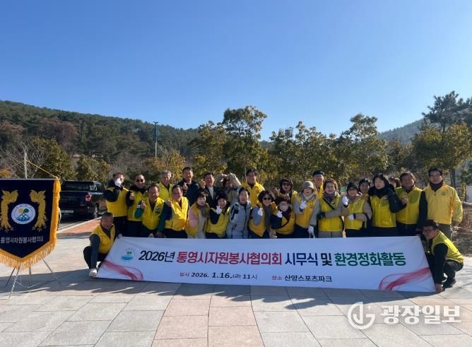 광장일보 주재영 기자 | 통영시자원봉사협의회는 지난 16일 산양스포츠파크 일원에서 2026년 시무식과 함께 환경정화활동을 진행하며 새해 공식 활동의 막을 올렸다.