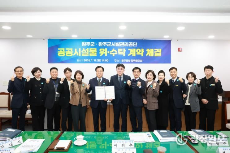 19일 양 기관은 완주군청 전략회의실에서 ▲완주군 청소년수련관 수영장 ▲완주군 국민체육센터 ▲완주군 이서문화체육센터 ▲완주군 근로자종합복지관 수영장 등 4개 공공시설의 운영·관리를 위한 위·수탁 계약을 체결했다.