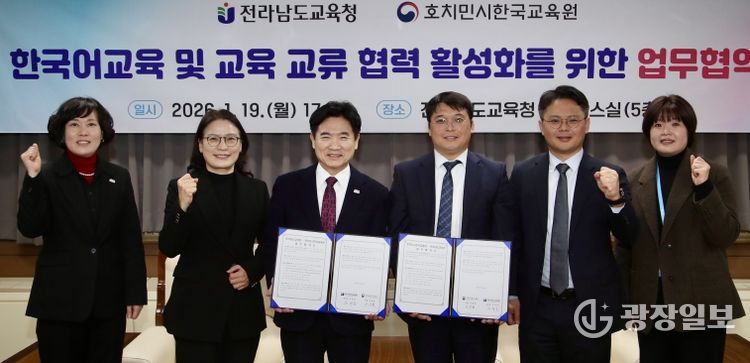 김대중 전라남도교육감은 “이번 협약은 한국어교육을 매개로 국제 교육교류를 확대하고, 외국인 유학생들에게도 보다 체계적인 교육 기회를 제공하는 의미 있는 계기”라며 “전남교육청은 지역과 세계를 잇는 글로컬 교육을 통해 학생들이 세계시민으로 성장할 수 있도록 지속적으로 노력하겠다”고 밝혔다.