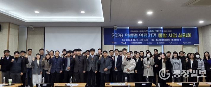 광장일보 주재영 기자 | 김해의생명·산업진흥원은 지난 15일, 김해중소기업비즈니스센터에서 지역 내 의료기기·헬스케어 기업의 성장을 돕기 위한 '2026년 의생명·의료기기 통합 사업설명회'가 성황리에 마무리됐다고 밝혔다.
