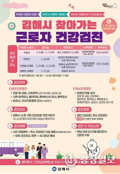 광장일보 주재영 기자 | 김해시는 찾아가는 근로자 건강검진을 실시한다고 20일 밝혔다.