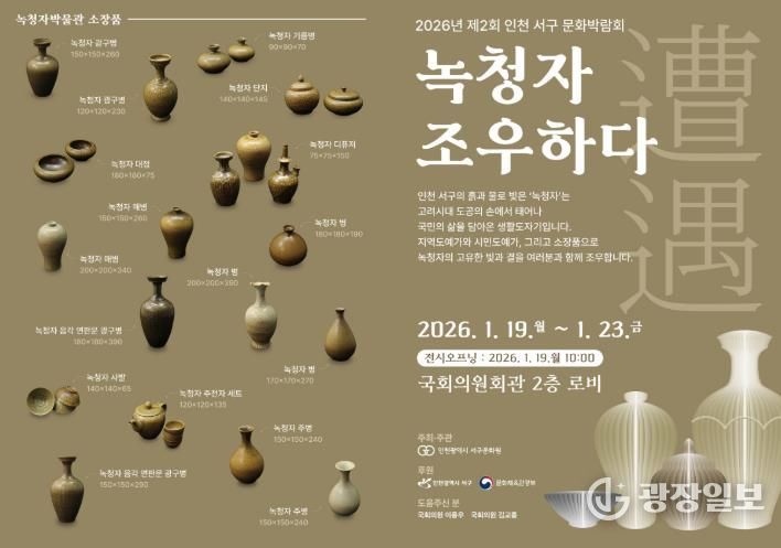 ‘제2회 서구문화박람회- 녹청자 조우하다’ 전시는 2026년 1월 19일 10시 개막을 시작으로 1월 23일 오후 2시까지 진행되며 무료 관람할 수 있다.