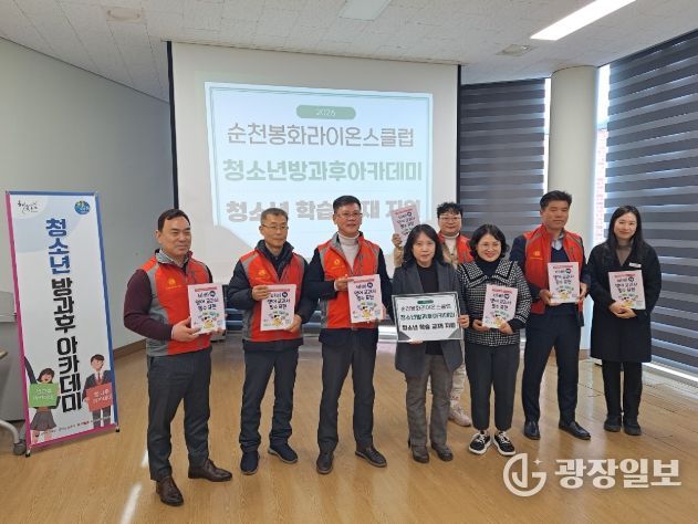 광장일보 주재영 기자 | 순천봉화라이온스클럽(회장 조동천)은 지난 19일 순천시 청소년문화의집에서 청소년방과후아카데미 초등·중등 청소년들의 학습 지원을 위해 100만 원 상당의 교재를 전달했다.