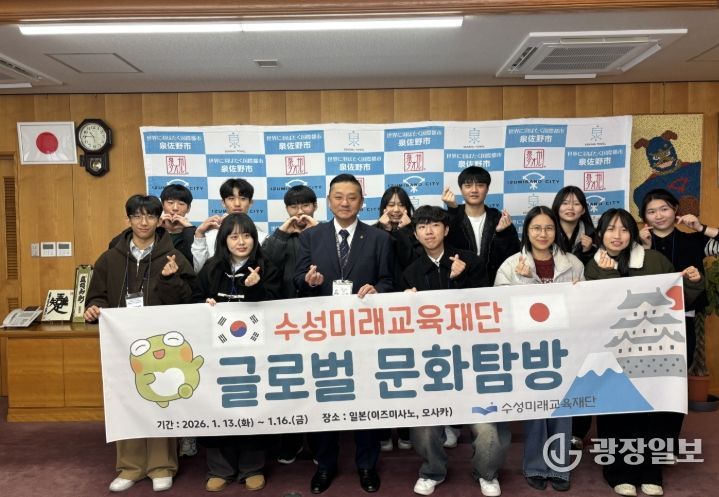 광장일보 주재영 기자 | 대구 수성미래교육재단은 지난 13일부터 16일까지 수성구 고등학생 12명을 일본 이즈미사노시에 탐방단으로 파견해 글로벌 문화 탐방 프로그램을 운영했다고 밝혔다.