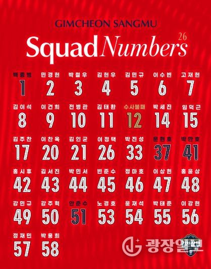 광장일보 주재영 기자 | 김천상무가 2026시즌 프로선수단 배번을 공개했다.