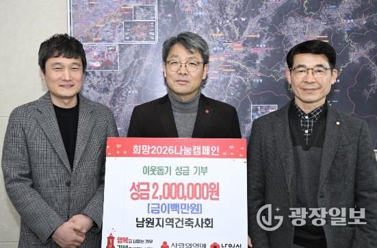 광장일보 주재영 기자 | 남원시는 지난 20일, 남원지역건축사회가 ‘희망 2026 나눔 캠페인’에 성금 200만 원을 기부했다고 밝혔다.