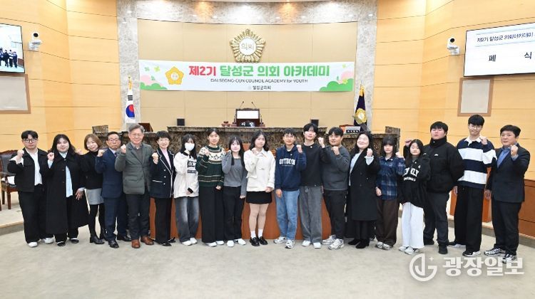 광장일보 주재영 기자 | 달성군의회는 20일 달성군의회 본회의장에서 ‘달성군의회 제2기 청소년 의회 아카데미’를 개최했다. '의회 아카데미'란 어린이·청소년을 대상으로 의정활동 전반에 대한 체험활동을 통해 지방의회 역할과 기능에 대한 이해를 높이고 대의민주주의를 경험해 보는 프로그램이다.