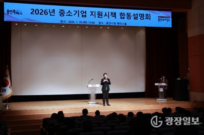광장일보 주재영 기자 | 용인특례시는 20일 시청 에이스홀에서 지역 내 중소기업 지원 정책을 설명하는 ‘2026년 중소기업 지원시책 합동설명회’를 열었다.
