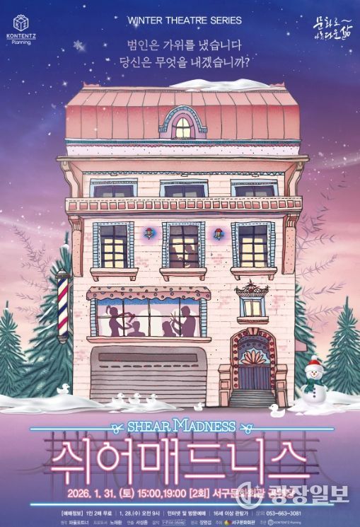 광장일보 주재영 기자 | 서구문화회관은‘Winter Theatre Seires(겨울 연극 시리즈)’의 첫 번째 순서로 연극'쉬어매드니스'를 1월 31일 오후 3시, 7시 (2회) 무대에 올린다.
