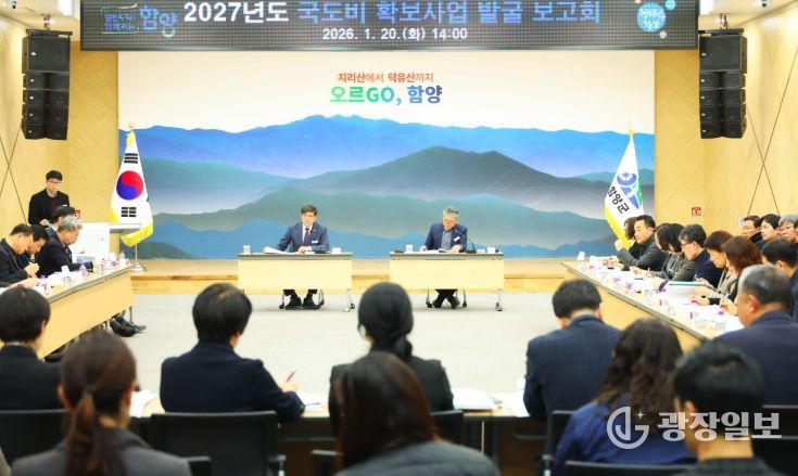 광장일보 주재영 기자 | 함양군은 20일 오후 군청 대회의실에서 진병영 군수 주관으로 부군수, 국·소장과 전 부서장 및 사업담당 등 80여 명이 참석한 가운데 ‘2027년도 제1차 국도비 확보사업 발굴 보고회’를 개최했다.