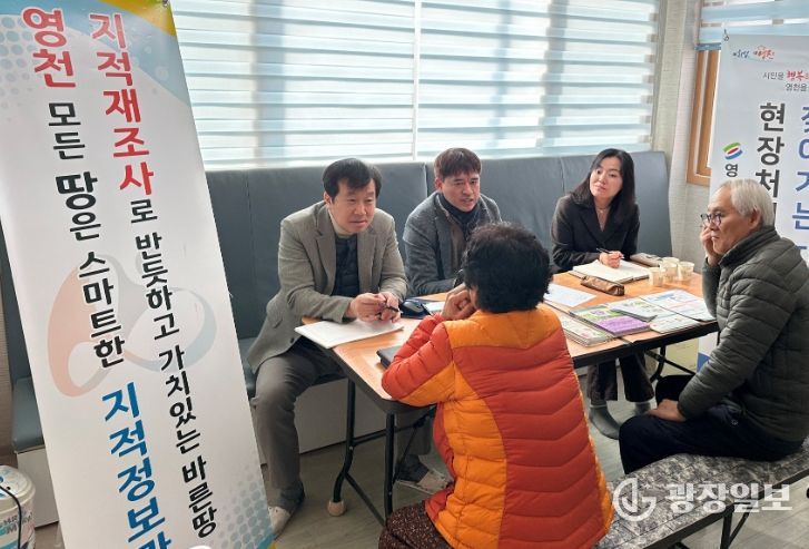 ‘찾아가는 지적민원 현장처리제’는 지적정보과를 중심으로 세정과, 종합민원과와 한국국토정보공사 영천지사가 함께 참여해 주민 생활 및 재산권과 밀접한 각종 지적·생활 민원을 마을 현장에서 접수·처리하는 현장 밀착형 행정서비스다.