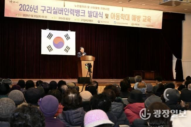 광장일보 주재영 기자 | 구리시는 사회복지법인 봉선복지재단이 운영하는 구리실버인력뱅크에서 지난 1월 20일 구리시청 대강당에서 ‘2026년 노인 일자리 및 사회활동 지원사업’ 참여자 820명을 대상으로 발대식을 개최했다고 밝혔다.