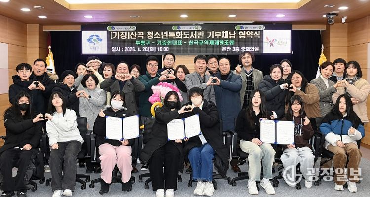 광장일보 주재영 기자 | 부평구는 지난 20일 구청에서 (가칭)산곡-청소년특화도서관 건립을 위한 기부채납 업무협약식을 개최했다.