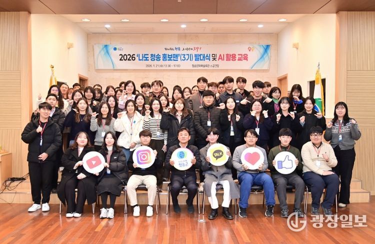 광장일보 주재영 기자 | 청송군은 직원들이 직접 SNS 홍보에 참여하는 2026년 ‘나도 청송 홍보맨’ 발대식 및 AI 활용 교육을 21일 청송문화예술회관 소공연장에서 개최했다.