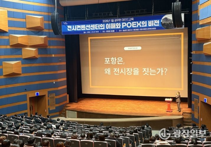 광장일보 주재영 기자 | 포항시는 21일 문화동 대잠홀에서 공무원 500여 명을 대상으로 ‘전시컨벤션센터의 이해와 POEX의 비전’을 주제로 1월 공무원 마인드교육을 실시했다.