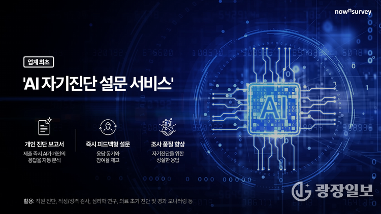 광장일보 =주재영 기자 | 엘림넷(대표 한환희)이 운영하는 온라인 설문 플랫폼 나우앤서베이(nownsurvey)가 업계 최초로 ‘AI 자기진단 설문’ 서비스를 공식 출시했다고 22일 밝혔다.