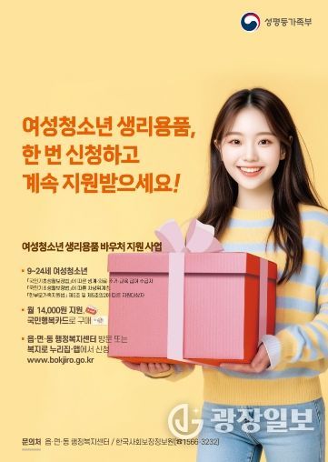 광장일보 이현나 기자 | 양양군은 취약계층 여성청소년의 건강한 성장과 복지 향상을 위해 '여성청소년 생리용품 바우처 지원사업'을 시행한다.