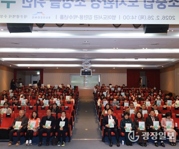 광장일보 주재영 기자 | 대구 수성구는 지난 26일 범어도서관 김만용·박수년홀에서 ‘녹색×건축 : 탄소중립 도시환경 조성’을 주제로 수미창조 포럼을 개최했다.