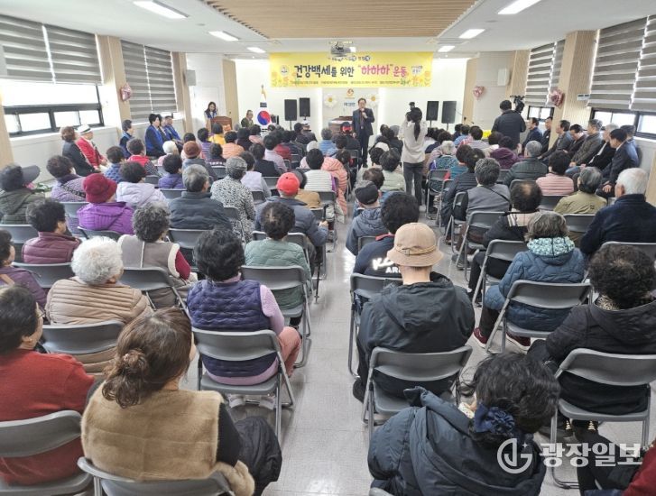 광장일보 주재영 기자 | 바르게살기운동 문경시협의회(회장 손국선)는 지난 3월 4일 바르게살기운동 문경시청년회(회장 전재용) 주관으로 마성면 행정복지센터에서 관내 어르신 100여 명이 참석한 가운데 올해 첫‘2026년 건강백세를 위한 하하하운동’을 개최했다.