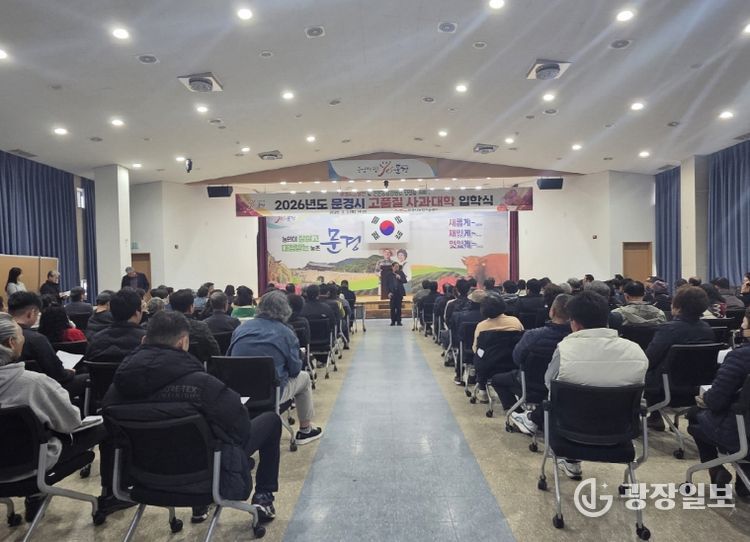 광장일보 주재영 기자 | 문경시농업기술센터는 지난 3월 5일 농업기술센터 대강당에서 2026년도 문경시 고품질 사과대학 입학식을 개최하고, 본격적인 교육과정 운영에 들어갔다.