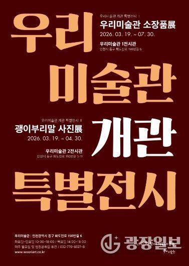 광장일보 주재영 기자 | 인천 동구가 2026년부터 직접 운영하는 우리미술관이 개관기념 특별전시를 개최한다. 이번 전시는 총 2부로 나누어, 1부는 우리미술관 소장품 전시, 2부는 괭이부리마을 사진 전시로 진행된다.