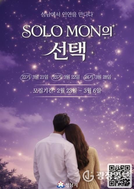 광장일보 주재영 기자 | 성남시가 4년째 진행 중인 미혼 남녀 만남 행사 ‘솔로몬(SOLO MON)의 선택’ 인기가 여전한 것으로 나타났다.