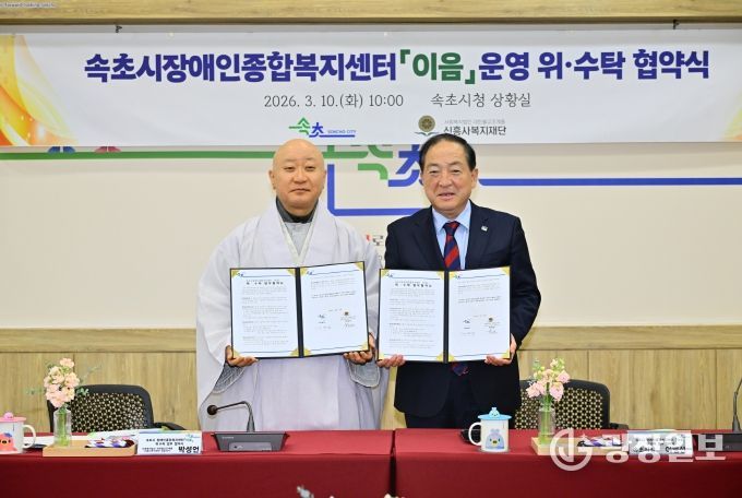 이번 협약은 2026년 3월 말부터 지역 장애인을 대상으로 상담, 재활, 문화·여가 프로그램 등 통합 재활서비스를 제공할 속초시 장애인종합복지센터 ‘이음’의 운영을 위해 마련됐다. 시는 운영 위수탁을 통해 전문성과 경영 노하우를 결합한 안정적인 복지서비스 제공 기반을 마련한다는 방침이다.