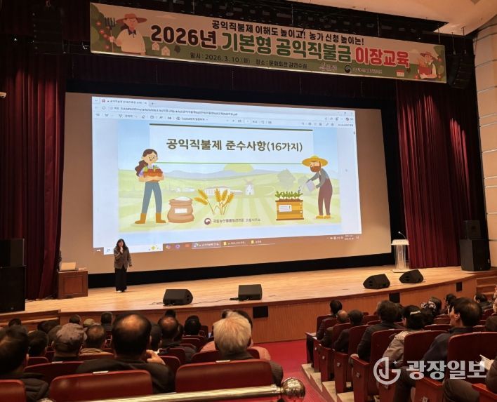 이번 교육은 공익직불제 제도에 대한 이해도를 높이고 마을 단위 안내 체계를 강화하기 위해 마련됐으며, 기본형 공익직불제 신청 요건과 준수사항, 부정수급 방지 등을 안내했다.