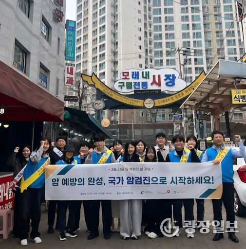 광장일보 주재영 기자 | 인천시 남동구는 오는 21일 ‘제19회 암 예방의 날’을 앞두고 모래내시장에서 국민건강보험공단 인천남동지사와 함께 국가암검진 홍보 캠페인을 실시했다고 19일 밝혔다.