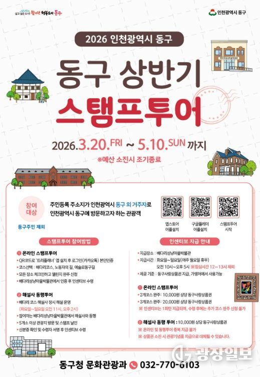 광장일보 주재영 기자 | 인천 동구는 3월 20일~5월 10일까지‘2026년 동구 상반기 스탬프투어’를 운영한다고 밝혔다.