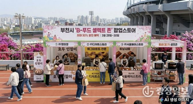 광장일보 주재영 기자 | 부천시는 3월 28일부터 30일까지 3일간 부천종합운동장 2층 트랙에서 ‘부천페스타 봄꽃여행’과 연계한 식품제조업소 팝업스토어 ‘B(Bucheon)-푸드 셀렉트 존’을 운영한다.