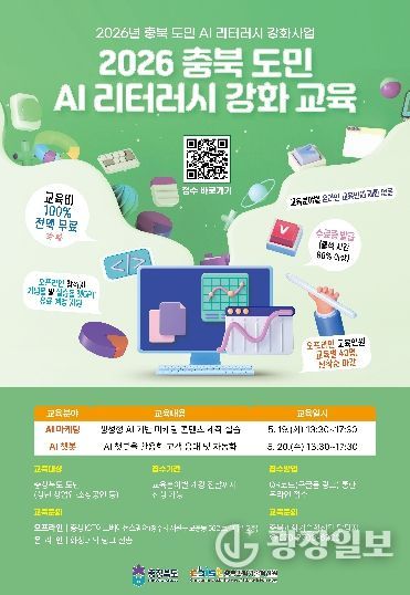 광장일보 이현나 기자 | 충청북도와 충북과학기술혁신원(원장 고근석)은 AI 일상화 시대에 대응하여 도민의 인공지능(AI) 활용 역량을 강화하기 위해 오는 5월 19일, 5월 20일 '2026 충북 도민 AI 리터러시 강화 교육'을 추진한다고 밝혔다.