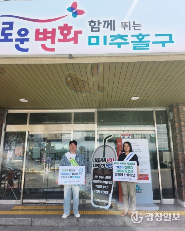 광장일보 주재영 기자 | 인천 미추홀구는 최근 국제 정세 불안과 자원·에너지 수급 불확실성이 확대됨에 따라, 공공기관이 선도적으로 자원 절약과 환경보호에 나서기 위해 ‘청사 내 일회용 컵 반입금지 캠페인’을 실시했다고 16일 밝혔다.