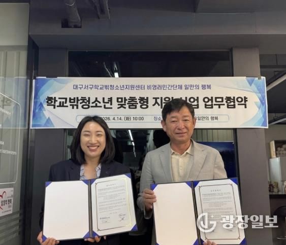 광장일보 주재영 기자 | 대구 서구학교밖청소년지원센터는 지난 4월 14일 비영리민간단체 ‘일만의 행복’과 학교밖청소년 지원을 위한 업무협약을 체결했다.