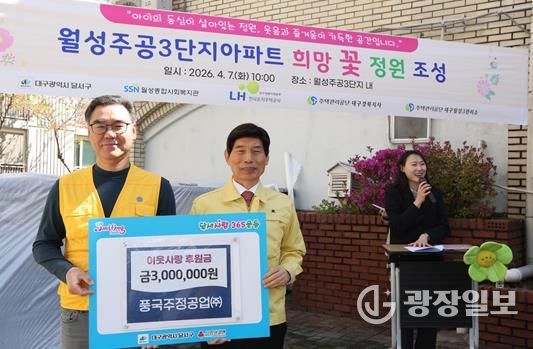 이태훈 달서구청장은 “지역사회를 위해 따뜻한 나눔을 실천해 주신 풍국주정공업에 깊이 감사드린다”며 “전달해 주신 후원금은 복지 사각지대를 해소하고 사회안전망을 강화하는 데 소중히 사용하겠다”고 밝혔다. 이어 “희망 꽃 정원 조성 활동에도 함께해 주셔서 감사드린다”고 덧붙였다.