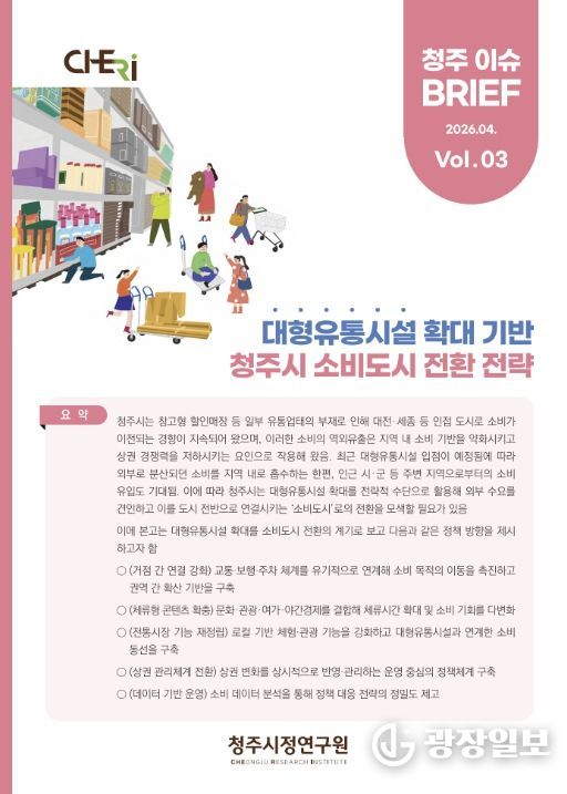 광장일보 이현나 기자 | 청주시정연구원은 대형유통시설 확대에 따른 소비구조 변화와 이에 대한 정책 대응 전략을 담은 이슈브리프를 발간했다고 20일 밝혔다.